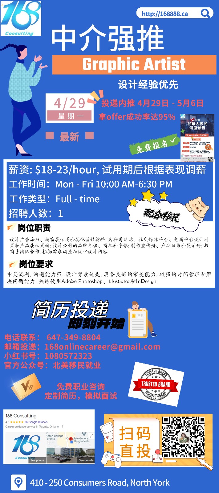【168新岗】旺市珠宝公司招聘Graphic Artist 1名(可移民)