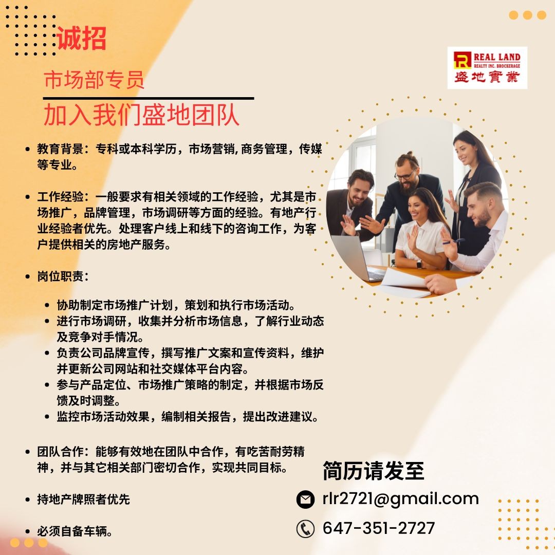 【168新岗】万锦地产公司招聘Administrative assistant 1名 (可移民)
