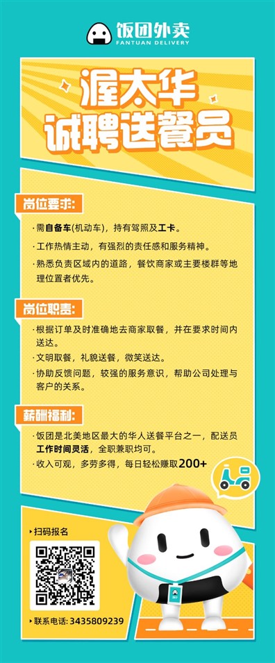 北美最大華人外送平台送餐员招聘 - 渥太华 目前招聘地区:渥太